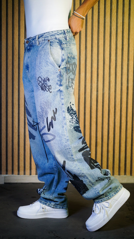 SAVE 17%BAGGY JEANS GRAFFITI DEGRADE BLUE